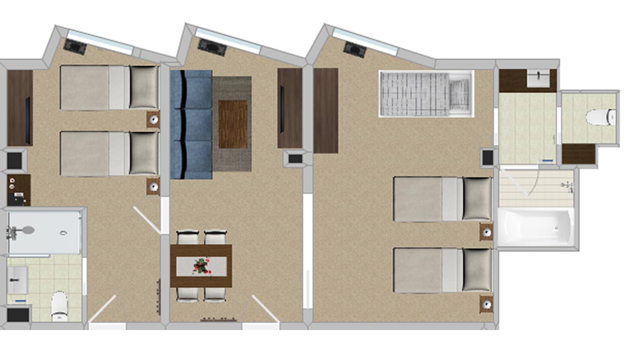 | ベッド | キングベッド2台又はシングルベッド4台+エキストラベッド1台&ソファーベッド1台 |